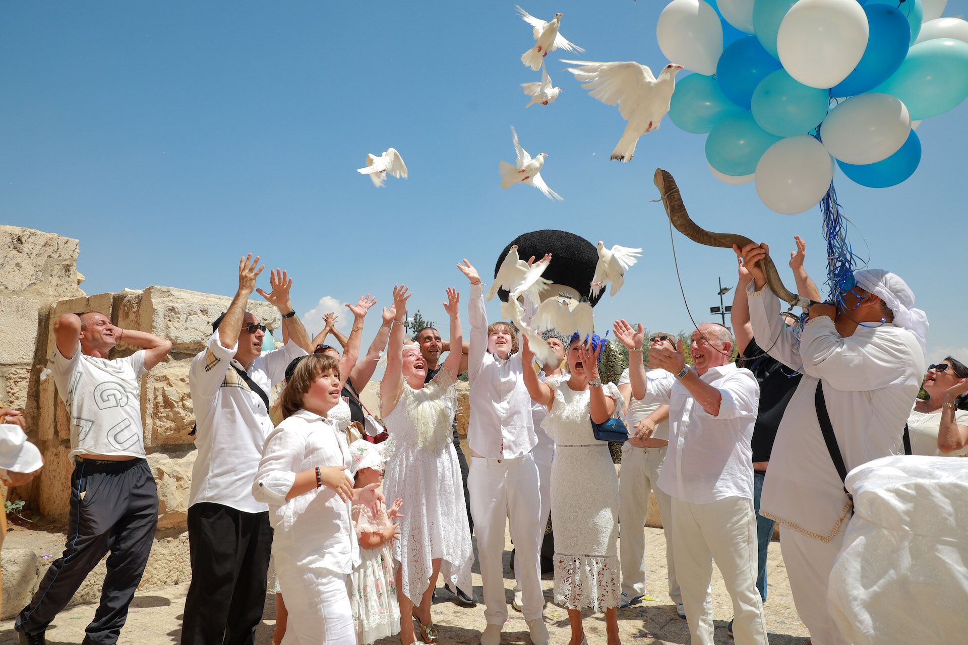 תמונה הפרחת יונים לבר מצווה בכותל